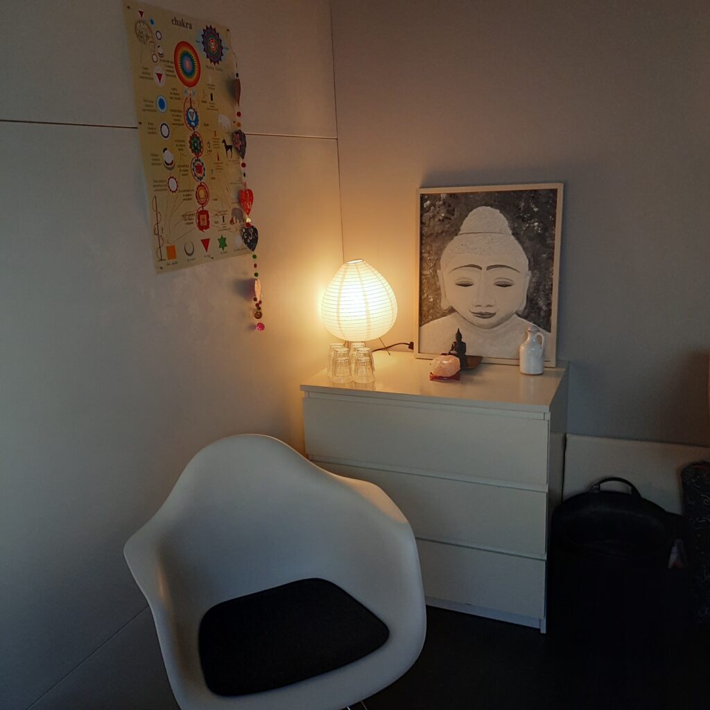 Het is een mooie, lichte ruimte en ik ontvang jullie daar met warmte en aandacht. Een mooie manier om te ontspannen en aan jezelf te werken, voor groei in je bewustzijn.